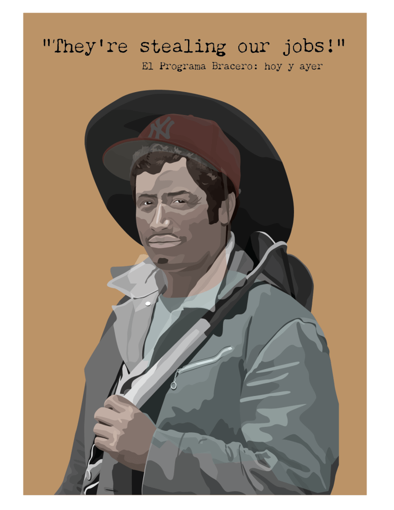 For my final assignment in a Spanish course that explored the history of US-Mexico relations, I created a poster featuring a Mexican worker from the 1940’s Bracero Program and a Mexican worker from today. In both time periods, complaints that Mexican workers are “stealing jobs” reverberated through American politics.