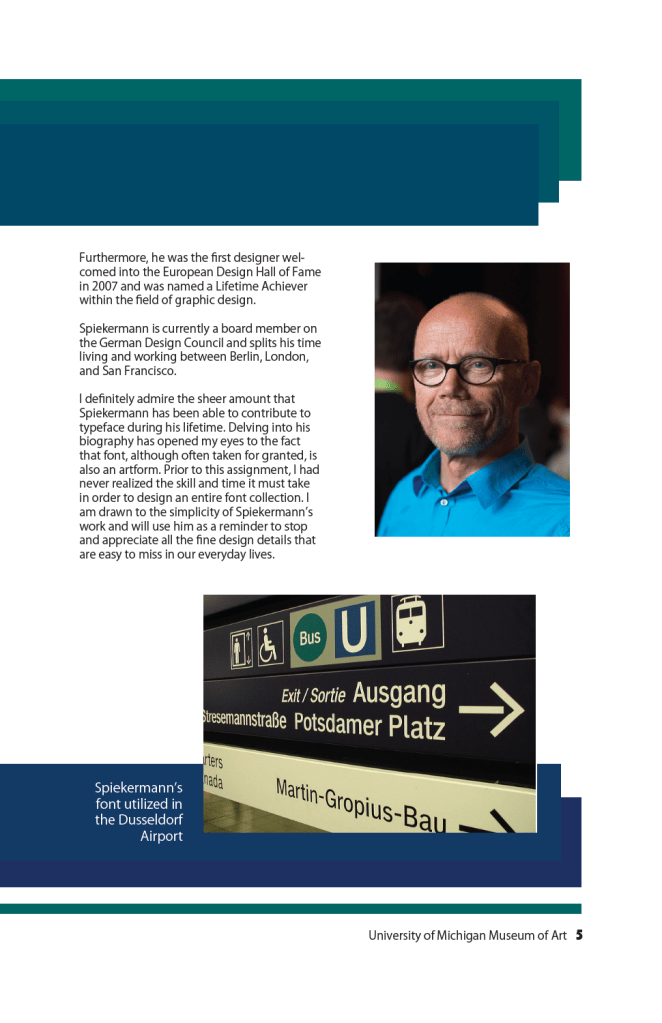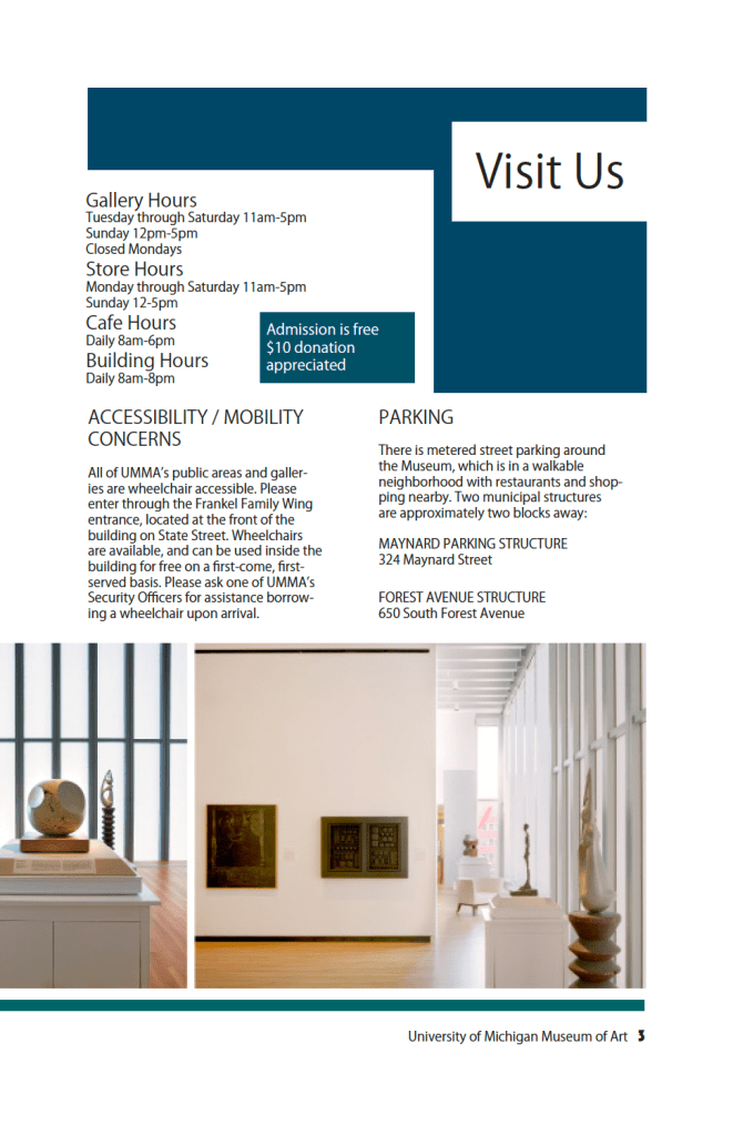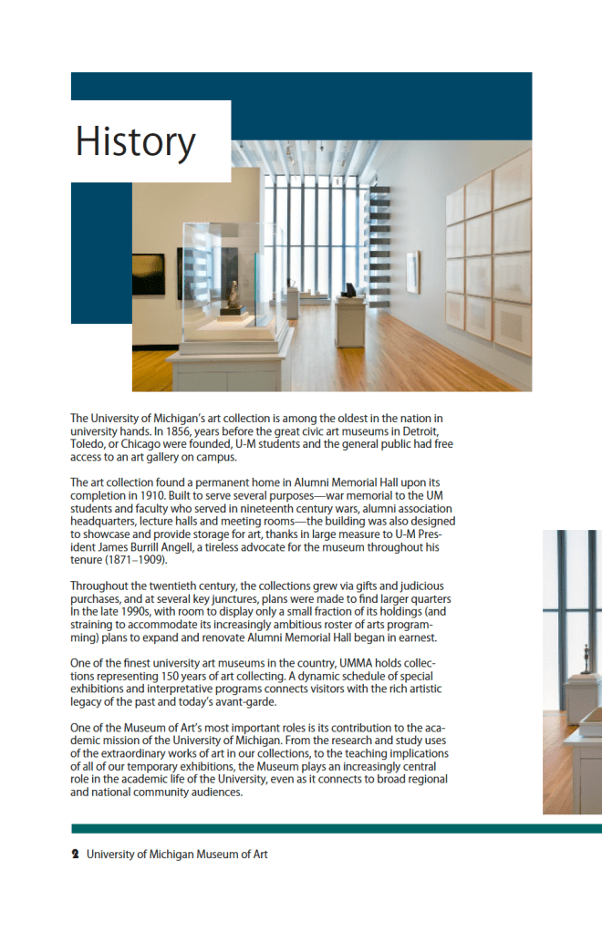 The spark that ignited my growing interest in graphic design, Graphic Design for Non-Majors was a course I enrolled in during the fall semester of my sophomore year at the University of Michigan. Two graded assignments are featured below: a travel-based infographic and a brochure for the University of Michigan Museum of Art.