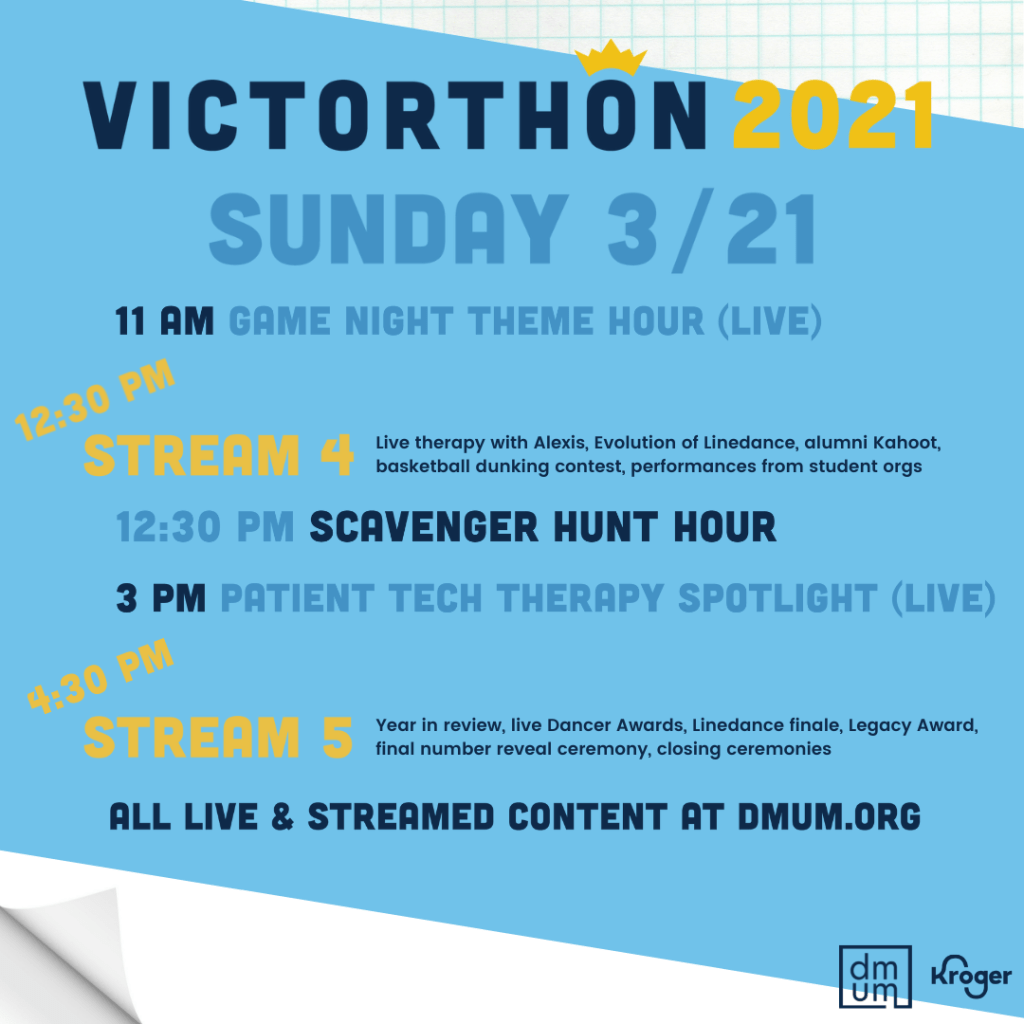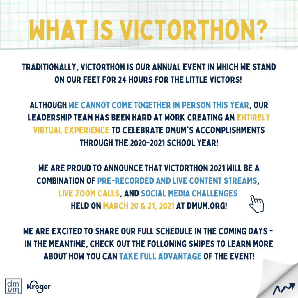 DMUM’s 24 hour stand-a-thon to raise funds for pediatric rehabilitation programs at C.S. Mott Children’s Hospital. Because the event was virtual due to COVID-19, it was imperative that the marketing materials grabbed attention and engaged participants from a distance. I created all of our collateral, some of which is featured below.