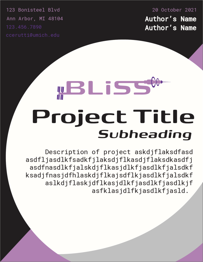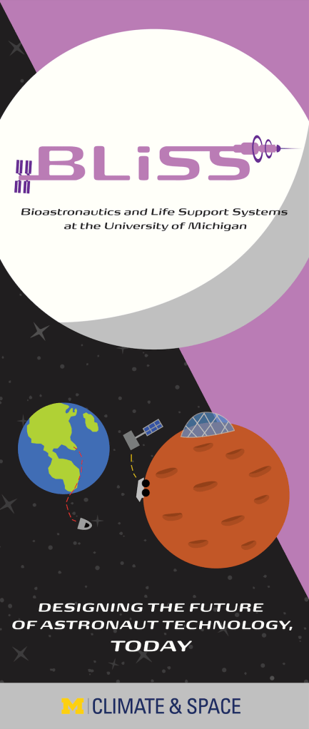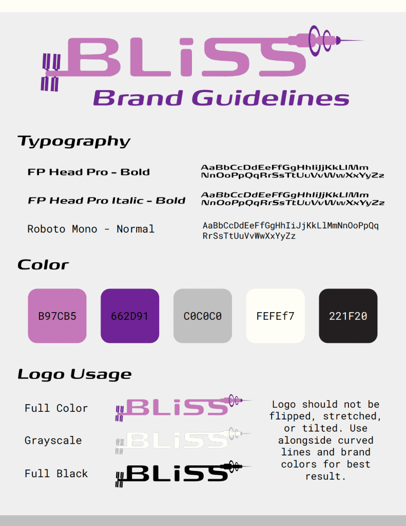 A student-run project team at the University of Michigan that collaborates with partners such as NASA and ICON, BLiSS needed a new look that embodies the present and future of space. My logo features simplistic drawings of the International Space Station and a Bernal sphere-inspired station, pulling viewers’ eyes left to right like a timeline of innovation. The letters themselves pay homage to NASA’s worm logo.